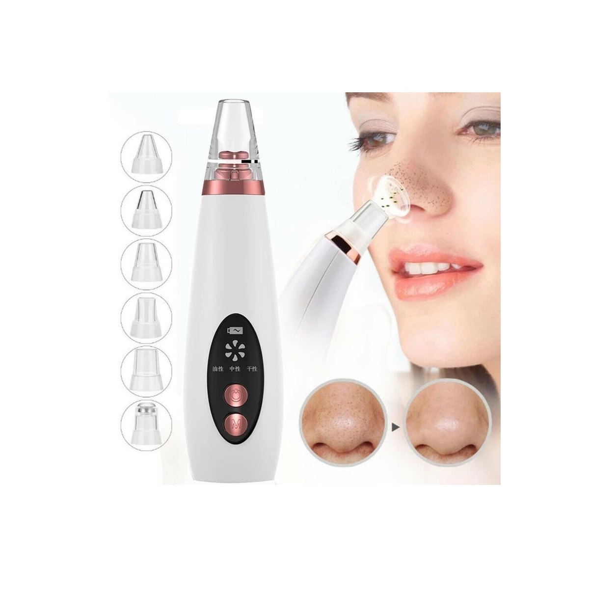 Aspiradora eliminadora de puntos negros recargable por USB: el sistema recargable por USB garantiza que su extractor de poros y el extractor de puntos negros estén siempre listos, lo que hace que estas herramientas eliminadoras de puntos negros sean más convenientes que los dispositivos tradicionales de limpieza de poros.